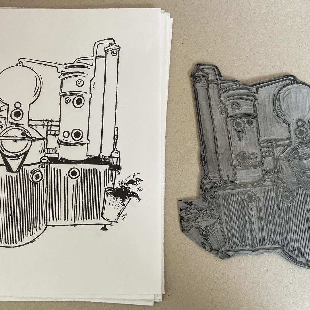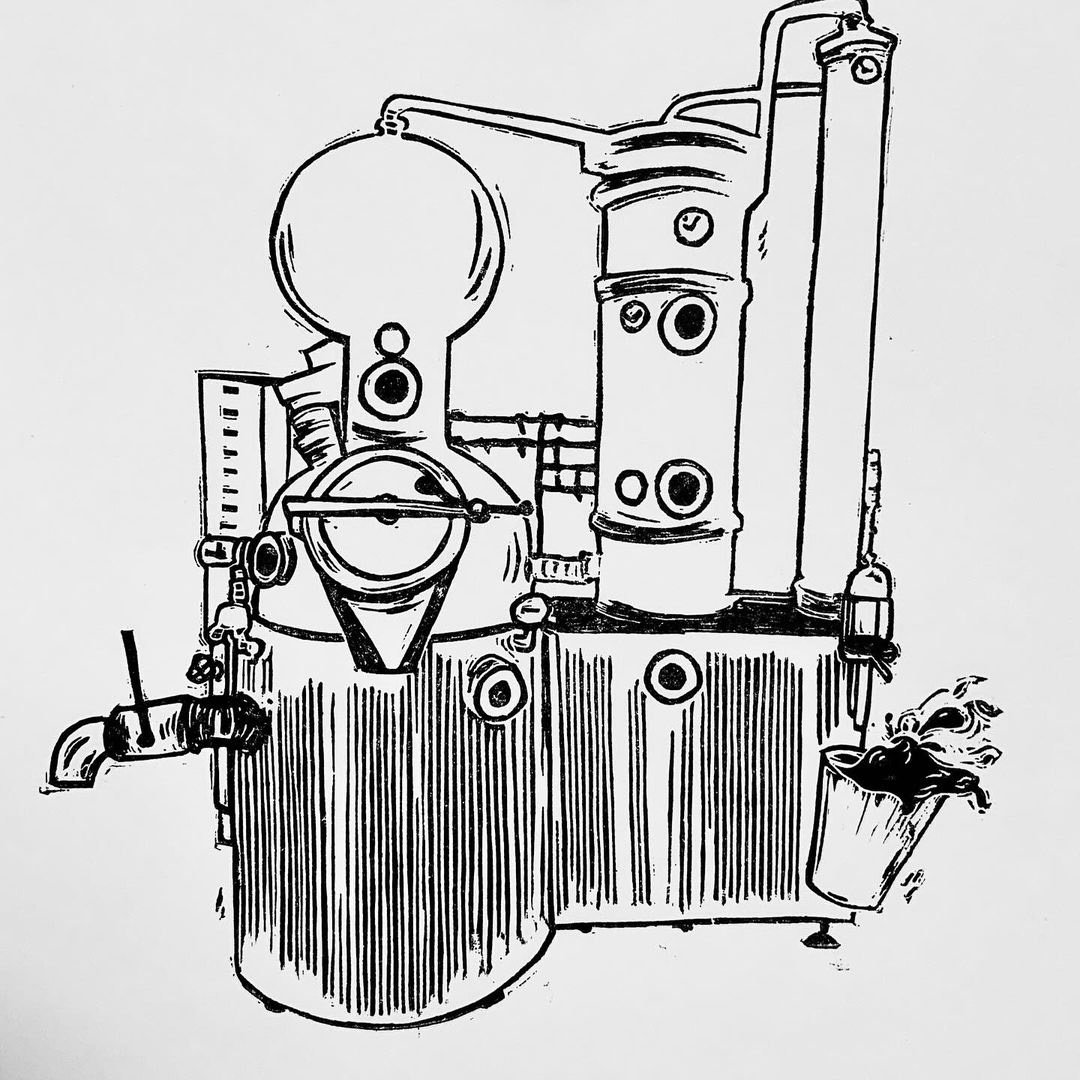Les distillateurs de L'Entropie ont fait appel à moi pour créer l'identité visuelle d'une gamme de gnôles naturelles inspirée des 4 saisons. J'ai d'abord gravé leur almbic puis je l'ai numérisé. Chaque étiquette aura sa propre couleur et son propre morceau d'alambic.