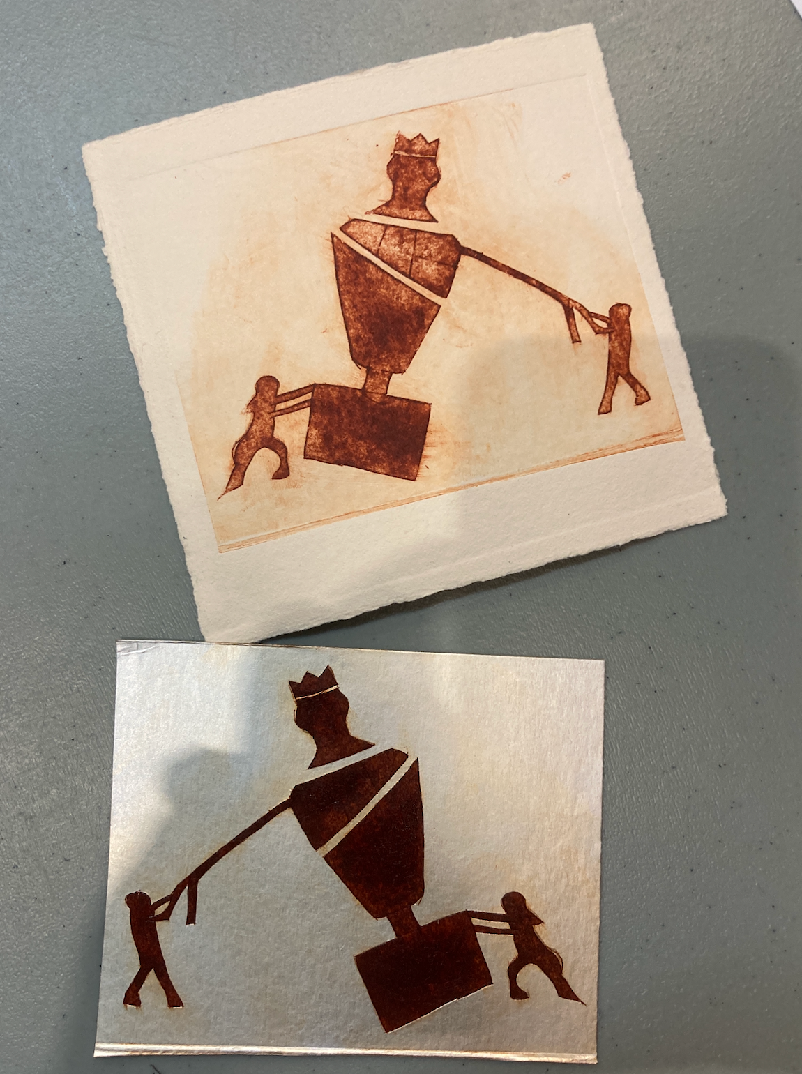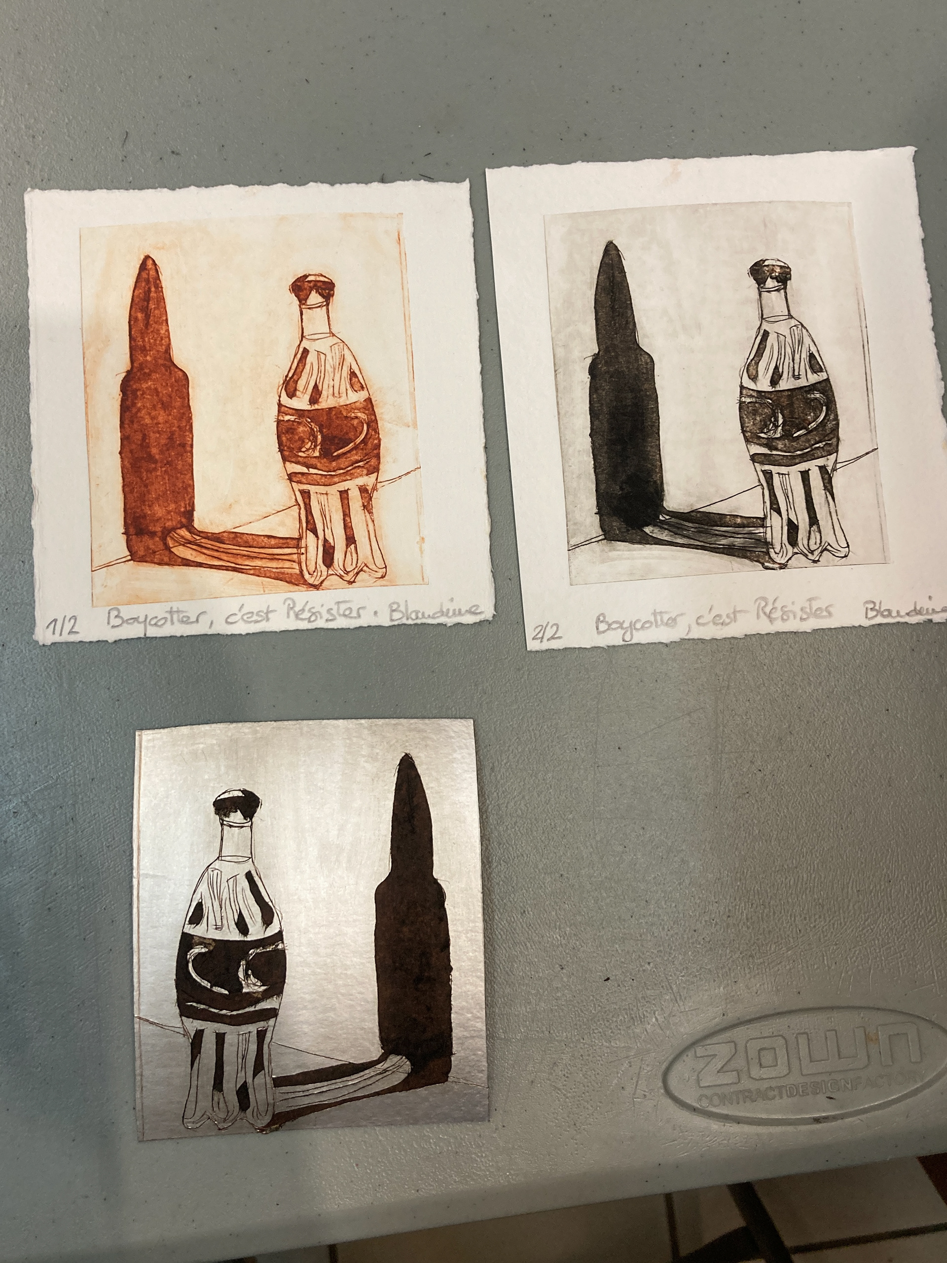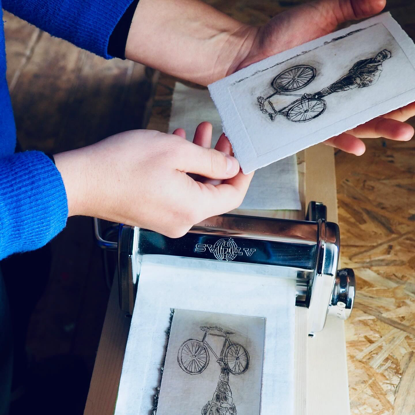 La gravure sur TetraPack permet d'imiter la gravure sur métal en utilisant des matériaux de récup : briques alimentaires et machine à pâte piratée.